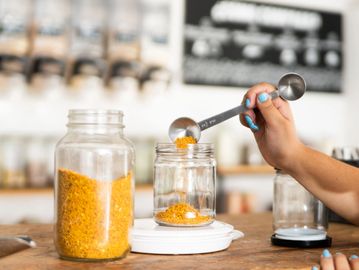 We are a shop where you can bring in your own containers (BYOC) or purchase reusable containers to fill up with our personal and home bulk essential goods.
